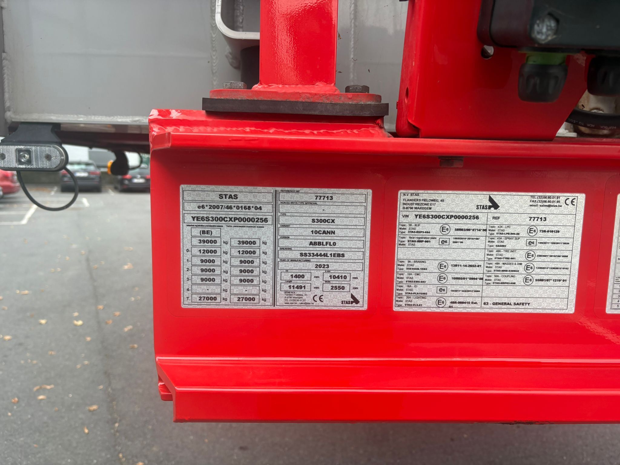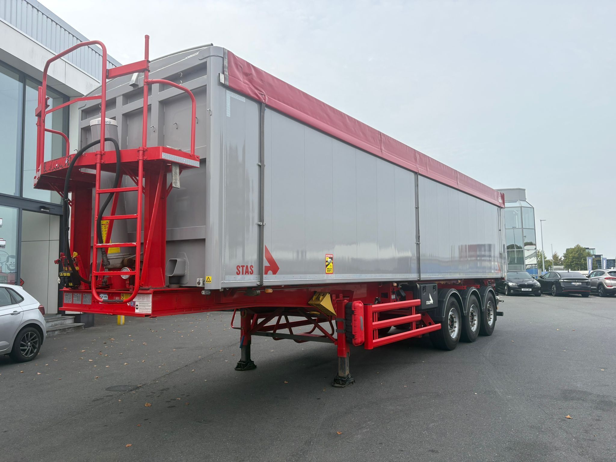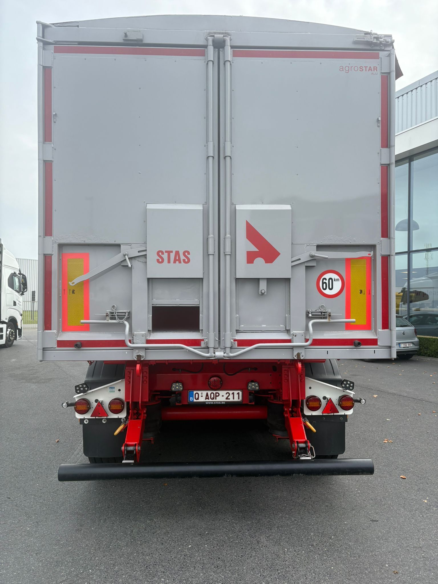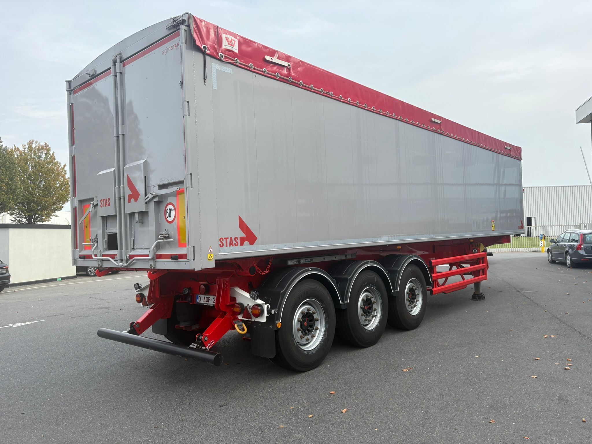 Naczepa dostępna na placu STAS w Waregem w Belgii.